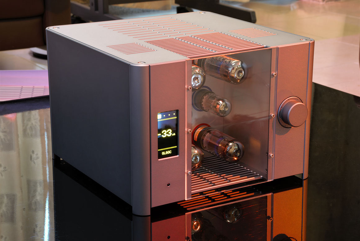 The Arcus amplifier uses only tubes and transformers in the signal path with no other active devices performing audio signal amplification.